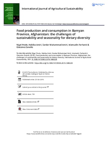 Food production and consumption in Bamyan Province, Afghanistan: the challenges of sustainability and seasonality for dietary diversity.