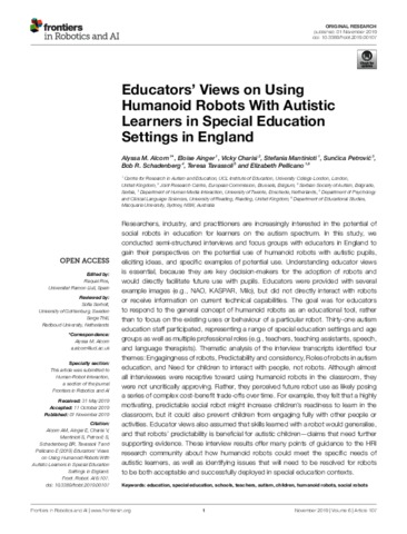 Educators' views on using humanoid robots with autistic learners in special education settings in England.