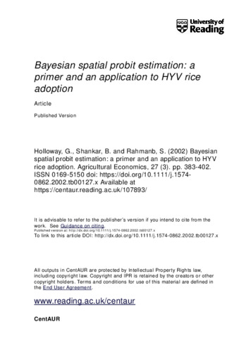 Bayesian spatial probit estimation: a primer and an application to HYV rice adoption.