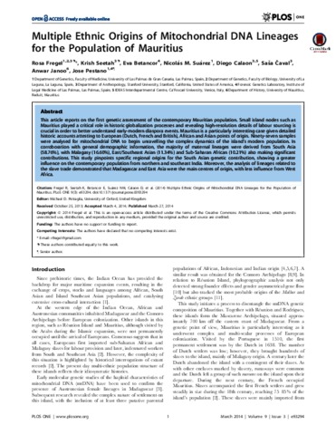 Multiple ethnic origins of mitochondrial DNA lineages for the population of Mauritius.