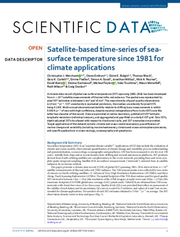 Satellite-based time-series of sea-surface temperature since 1981 for climate applications.