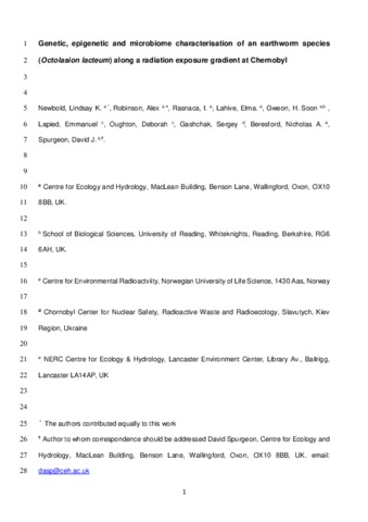 Genetic, epigenetic and microbiome characterisation of an earthworm species (Octolasion lacteum) along a radiation exposure gradient at Chernobyl.