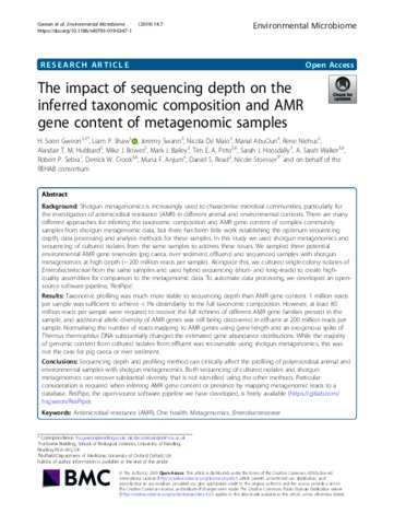 The impact of sequencing depth on the inferred taxonomic composition and AMR gene content of metagenomic samples.