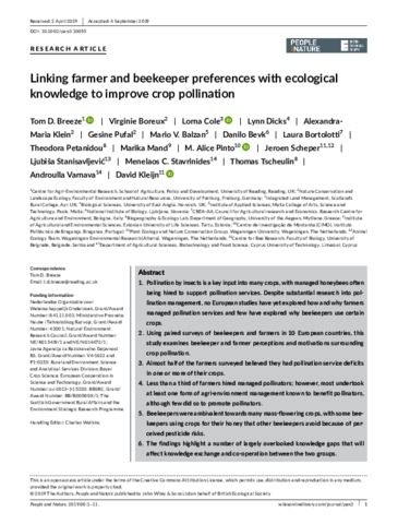 Linking farmer and beekeeper preferences with ecological knowledge to improve crop pollination.