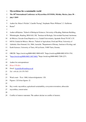 New Phytologist Meeting Report for the 10th International Conference on Mycorrhiza (ICOM10), Mérida, Mexico, June 30 – July 5 2019