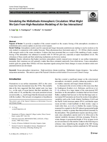 Czaja, A., Frankignoul, C., Minobe, S. and Vanniere, B.