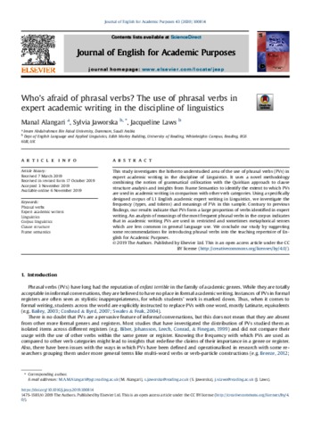 Who’s afraid of phrasal verbs? The use of phrasal verbs in expert academic writing in the discipline of linguistics.