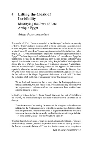 Lifting the cloak of invisibility: identifying the Jews of late antique Egypt.