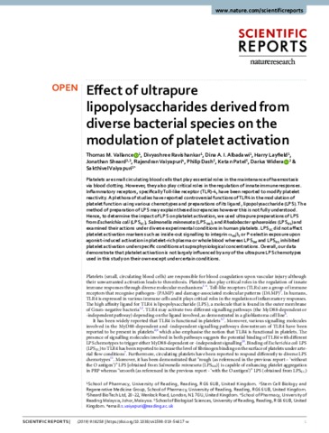 Effect of ultrapure lipopolysaccharides derived from diverse bacterial species on the modulation of platelet activation.