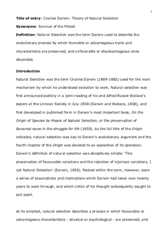 Stack, D. (2019) Charles Darwin: theory of natural selection. In: Shackelford, T. K. and Weekes-Shackelford, V. A. (eds.) Encyclopedia of Evolutionary Psychological Science. Springer, Cham, Switzerland. doi: 10.1007/978-3-319-16999-6