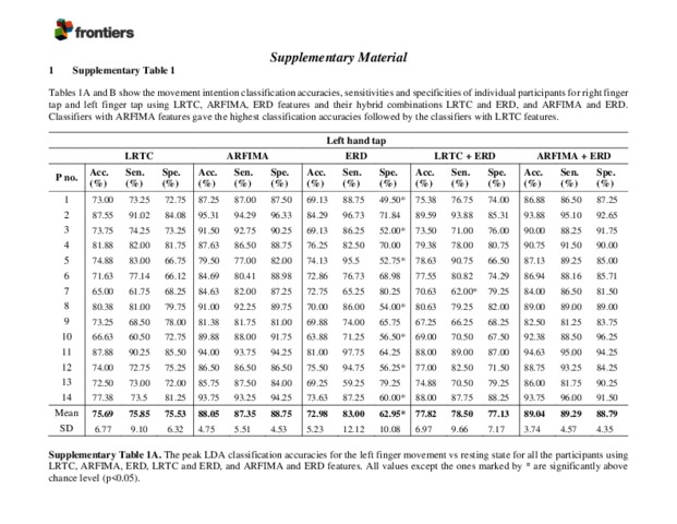 Uncontrolled Keywords Neuroscience, Long-Range Temporal Correlation (LRTC), Short-Range Dependence (SRD), Autoregressive Fractionally Integrated Moving Average (ARFIMA), electroencephalography (EEG), Brain Computer Interface (BCI), movement intention, broadband, single trial