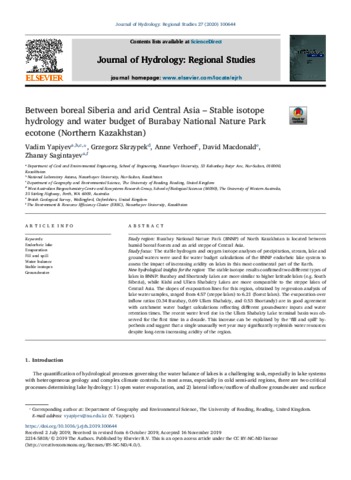 Between boreal Siberia and arid Central Asia - stable isotope hydrology and water budget of Burabay National Nature Park ecotone (Northern Kazakhstan).