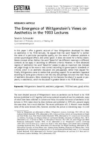 The emergence of Wittgenstein’s views on aesthetics in the 1933 lectures.