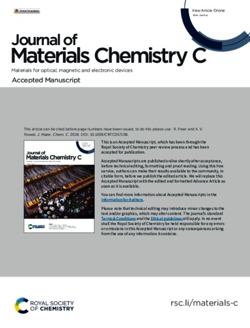 Freer, R. and Powell, A. V. (2020) Realising the potential of thermoelectric technology: a roadmap. Journal of Materials Chemistry C, 8 (2). pp. 441-463. ISSN 2050-7526 doi: 10.1039/C9TC05710B