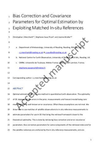 Bias correction and covariance parameters for optimal estimation by exploiting matched in-situ references.