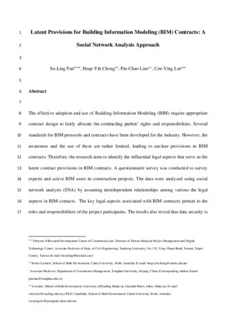 Latent provisions for building information modeling (BIM) contracts: a social network analysis approach.