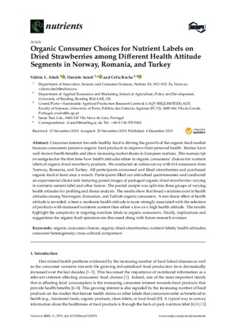 Organic consumer choices for nutrient labels on dried strawberries among different health attitude segments in Norway, Romania, and Turkey.