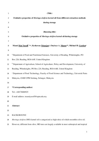 Oxidative properties of Moringa oleifera kernel oil from different extraction methods during storage.
