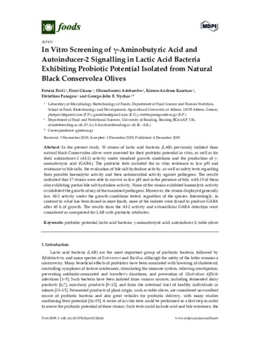 Ιn Vitro screening of γ-Aminobutyric Acid and Autoinducer-2 signalling in lactic acid bacteria exhibiting probiotic potential isolated from natural black conservolea olives