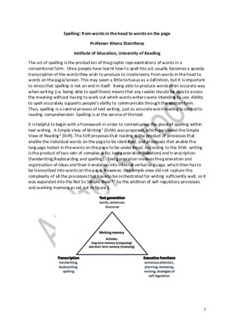 25 Treiman, R. (2017). Learning to spell words: Findings, theories, and issues. Scientific Studies of Reading, 21, 265–276