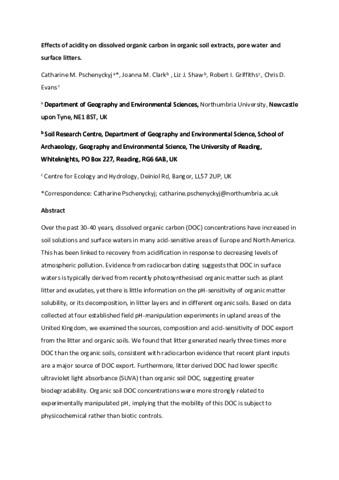 Effects of acidity on dissolved organic carbon in organic soil extracts, pore water and surface litters.