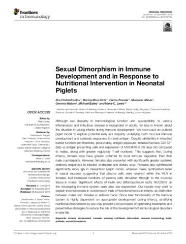 Sexual dimorphism in immune development and in response to nutritional intervention in neonatal piglets.