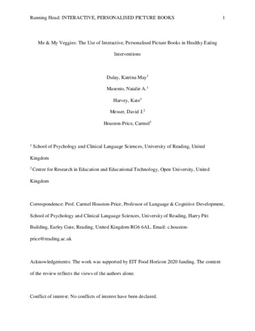 Me & my veggies: the use of interactive, personalised picture books in healthy eating interventions.