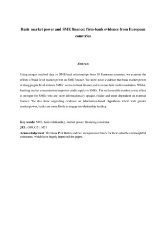 Ryan, R., O’Toole, C., McCann, F., 2014. Does bank market power affect SME financing constraints? Journal of Banking & Finance 49, 495-505.