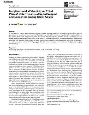 Neighborhood walkability or third places? Determinants of social support and loneliness among older adults.