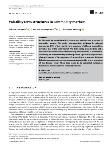Hollstein, F., Prokopczuk, M. and Würsig, C. (2020) Volatility term structures in commodity markets. Journal of Futures Markets, 40 (4). pp. 527-555. ISSN 1096-9934 doi: 10.1002/fut.22083