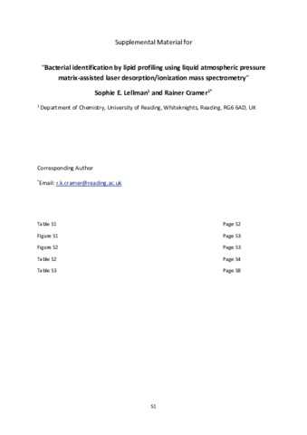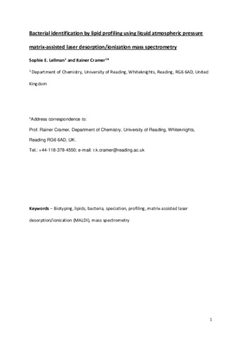 Bacterial identification by lipid profiling using liquid atmospheric pressure matrix-assisted laser desorption/ionization mass spectrometry.