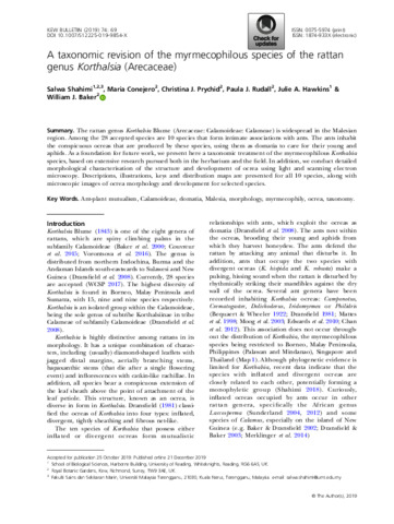 A taxonomic revision of the myrmecophilous species of the rattan genus Korthalsia (Arecaceae).