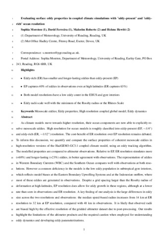 Evaluating surface eddy properties in coupled climate simulations with 'eddy-present' and 'eddy-rich' ocean resolution.
