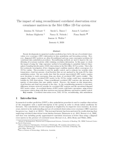 The impact of using reconditioned correlated observation error covariance matrices in the Met office 1D-Var system.