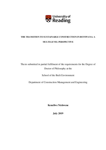 Ntshwene, K. (2019) The transition to sustainable construction in Botswana: a multi-level perspective. PhD thesis, University of Reading. doi: 10.48683/1926.00088415