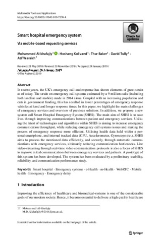 In recent years, the UK’s emergency call and response has shown elements of great strain as of today. The strain on emergency call systems estimated by a 9 million calls (including both landline and mobile) made in 2014 alone. Coupled with an increasing population and cuts in government funding, this has resulted in lower percentages of emergency response vehicles at hand and longer response times. In this paper, we highlight the main challenges of emergency services and overview of previous solutions. In addition, we propose a new system call Smart Hospital Emergency System (SHES). The main aim of SHES is to save lives through improving communications between patient and emergency services. Utilising the latest of technologies and algorithms within SHES is aiming to increase emergency communication throughput, while reducing emergency call systems issues and making the process of emergency response more efficient. Utilising health data held within a personal smartphone, and internal tracked data (GPU, Accelerometer, Gyroscope etc.), SHES aims to process the mentioned data efficiently, and securely, through automatic communications with emergency services, ultimately reducing communication bottlenecks. Live video-streaming through real-time video communication protocols is also a focus of SHES to improve initial communications between emergency services and patients. A prototype of this system has been developed. The system has been evaluated by a preliminary usability, reliability, and communication performance study.