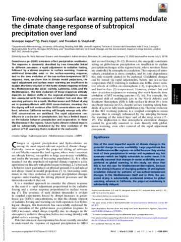 Time-evolving sea surface warming patterns modulate the climate change response of subtropical precipitation over land.