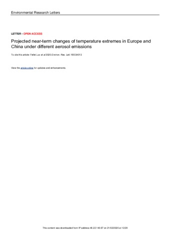 Projected near-term changes of temperature extremes in Europe and China under different aerosol emissions