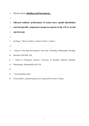 Deng, J. orcid id iconORCID: https://orcid.org/0000-0001-6896-8622, Pickles, B. J. orcid id iconORCID: https://orcid.org/0000-0002-9809-6455, Smith, S. T. orcid id iconORCID: https://orcid.org/0000-0002-5053-4639 and Shao, L. orcid id iconORCID: https://orcid.org/0000-0002-1544-7548 (2020) Infrared radiative performance of urban trees: spatial distribution and interspecific comparison among ten species in the UK by in-situ spectroscopy. Building and Environment, 172. 106682. ISSN 0360-1323 doi: 10.1016/j.buildenv.2020.106682