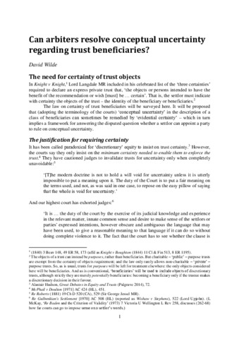 Wilde, D. (2020) Can arbiters resolve conceptual uncertainty regarding trust beneficiaries? Trust Law International, 33 (4). pp. 174-185. ISSN 09622624