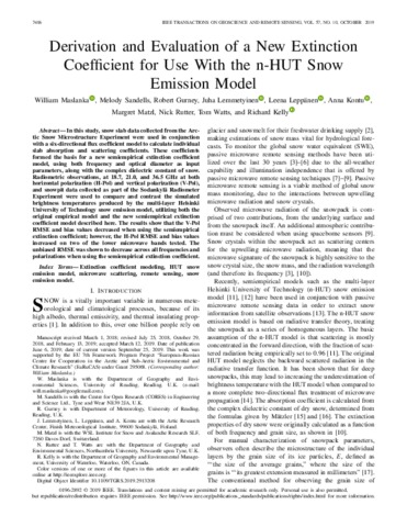 Derivation and evaluation of a new extinction coefficient for use with the n-HUT snow emission model.
