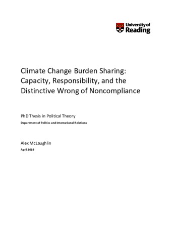 McLaughlin, A. (2019) Climate change burden sharing: capacity, responsibility, and the distinctive wrong of noncompliance. PhD thesis, University of Reading. doi: 10.48683/1926.00088759