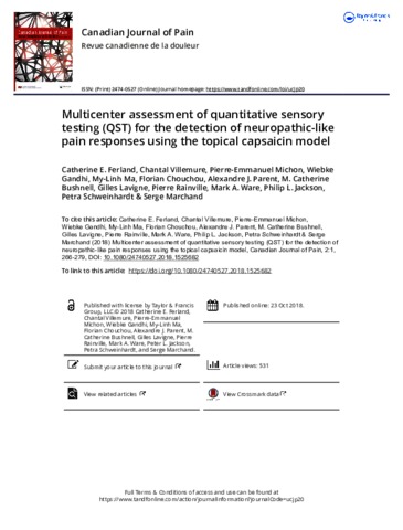 Multicenter assessment of quantitative sensory testing (QST) for the detection of neuropathic-like pain responses using the topical capsaicin model.
