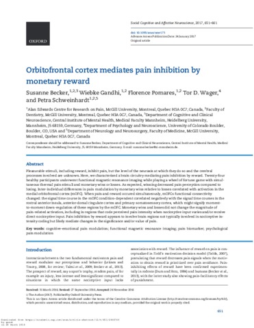 Orbitofrontal cortex mediates pain inhibition by monetary reward.