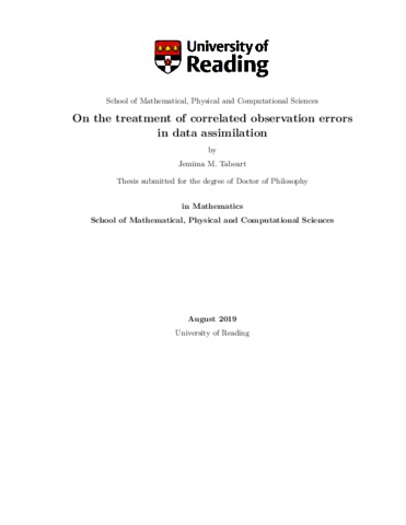 Tabeart, J. M. (2019) On the treatment of correlated observation errors in data assimilation. PhD thesis, University of Reading. doi: 10.48683/1926.00088830