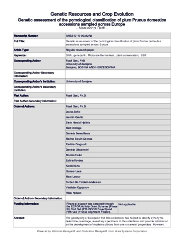Identification Number/DOI 10.1007/s10722-020-00901-y