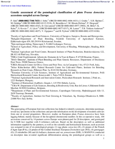 Genetic assessment of the pomological classification of plum Prunus domestica L. accessions sampled across Europe