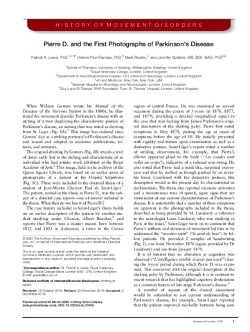 Lewis, P. A., Plun‐Favreau, H., Rowley, M. and Spillane, J. (2020) Pierre D. and the first photographs of Parkinson's disease. Movement Disorders, 35 (3). pp. 389-391. ISSN 1531-8257 doi: 10.1002/mds.27965