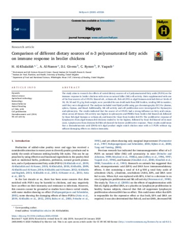 Comparison of different dietary sources of n-3 polyunsaturated fatty acids on immune response in broiler chickens.