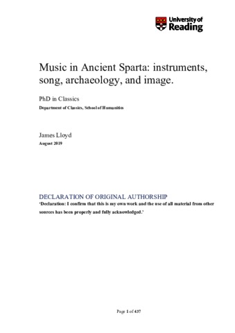 Lloyd, J. (2019) Music in Ancient Sparta: instruments, song, archaeology, and image. PhD thesis, University of Reading. doi: 10.48683/1926.00088938